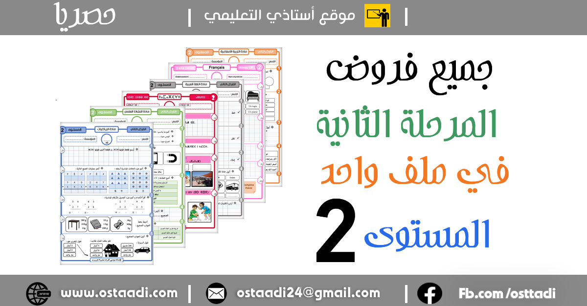 اليكم زوار موقع أستاذي التعليمي جميع فروض المرحلة الثانية ، الدورة الأولى الخاصة بالمستوى الثاني في ملف واحد و بحلة رائعة